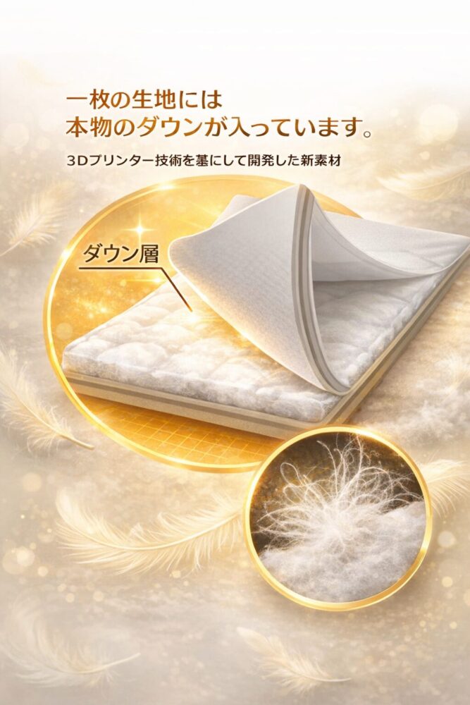 ✔ 生地の中に本物のダウン(羽毛)を内包
